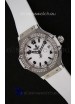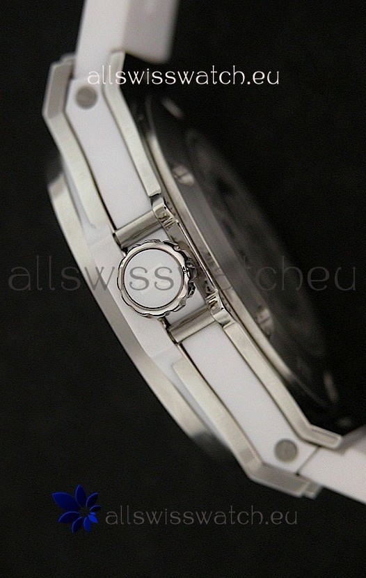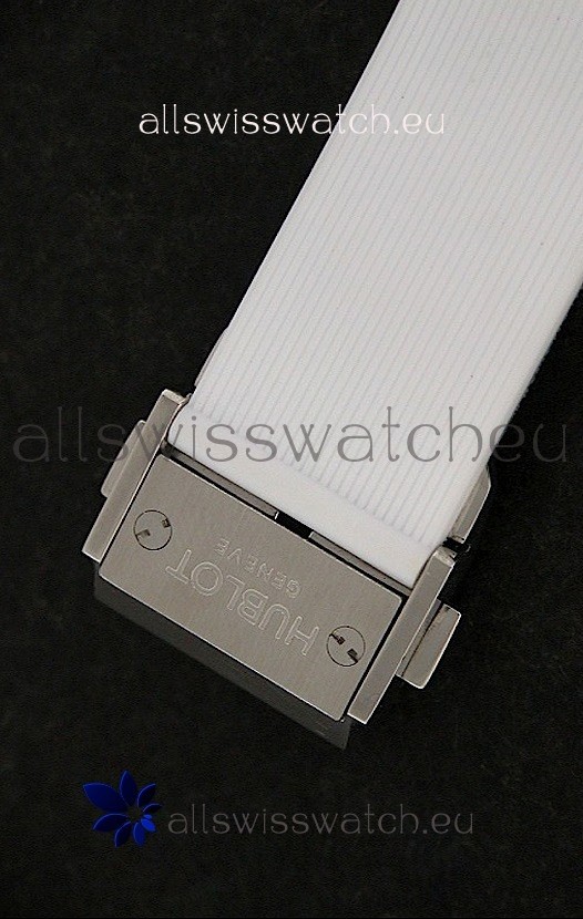 Strap: White Ribbon Pattern Rubber Strap with Deployant buckle