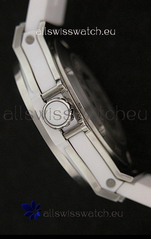 Strap: White Ribbon Pattern Rubber Strap with Deployant buckle