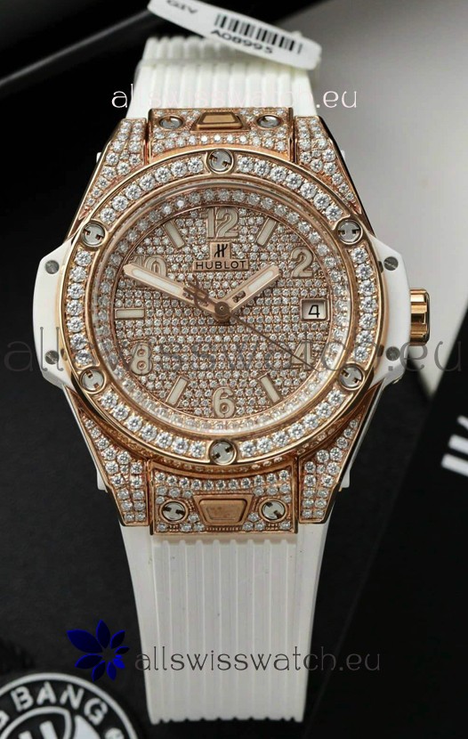 You're reviewing: Hublot Big Bang One Click Diamonds Paved Dial Rose Gold Swiss Replica Watch 39MM