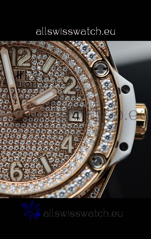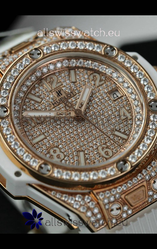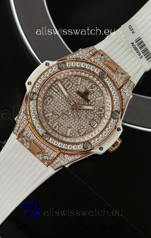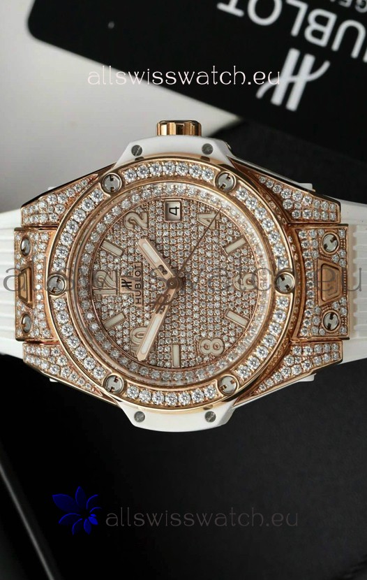 Hublot Big Bang One Click Diamonds Paved Dial Rose Gold Swiss Replica Watch