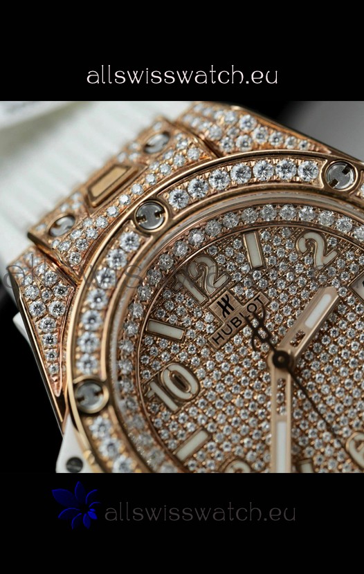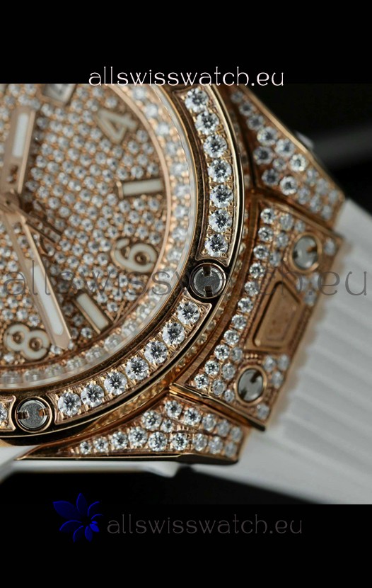 Hublot Big Bang One Click Diamonds Paved Dial Rose Gold Swiss Replica Watch 39MM