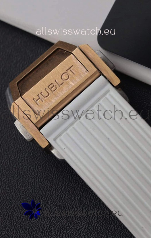 Rubber Strap with Steel Folding Clasp complete with Hublot Markings and Engravings.