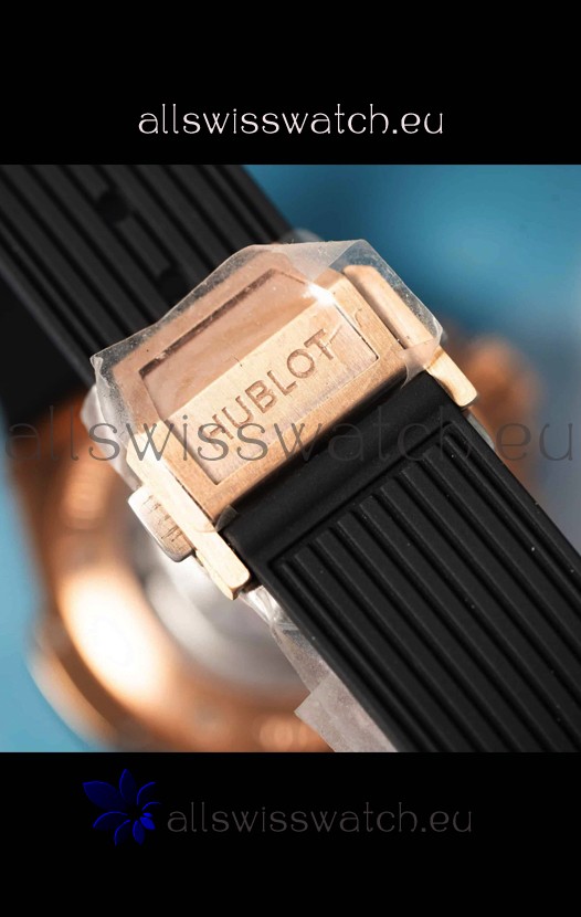 Genuine Rubber Strap with Steel Folding Clasp complete with Hublot Markings and Engravings.