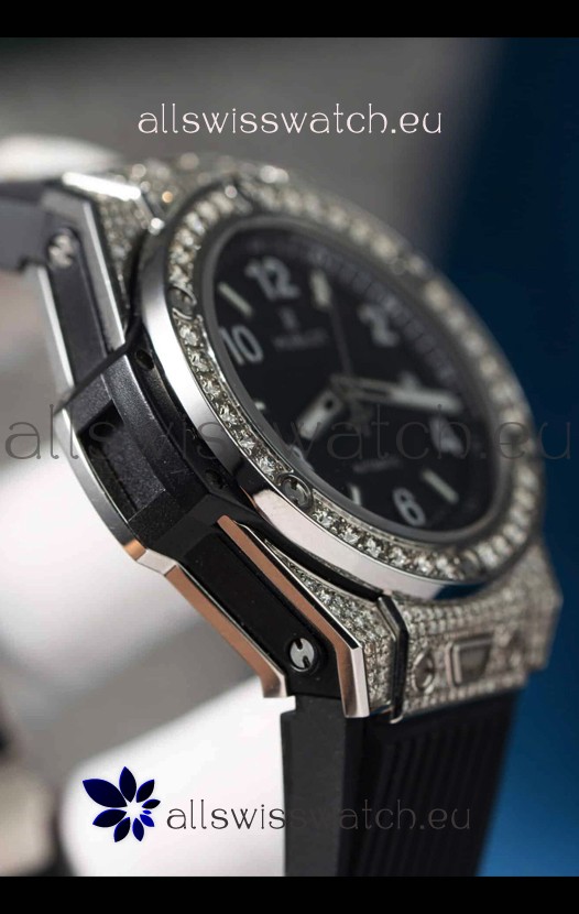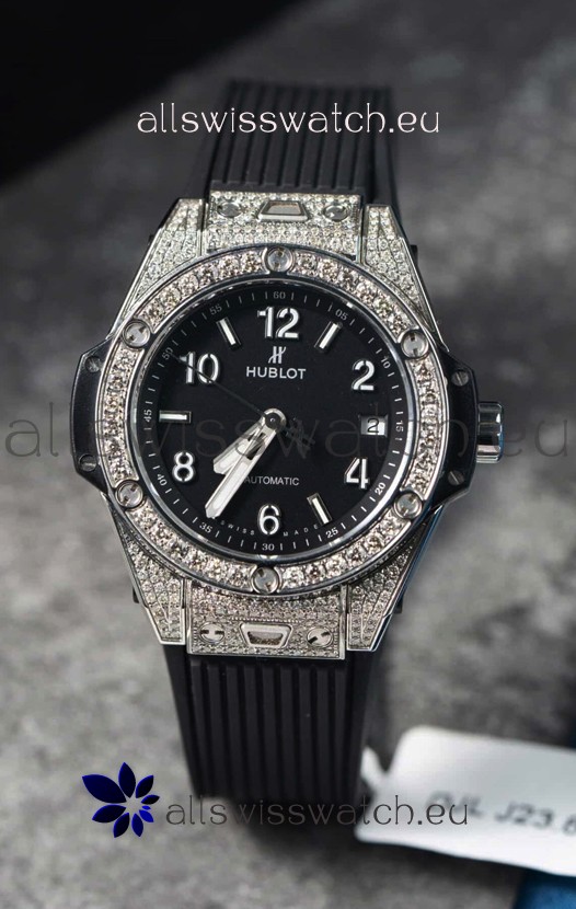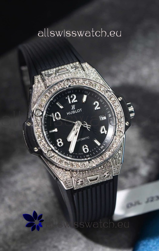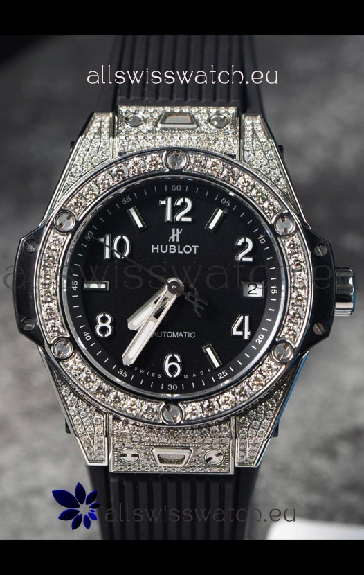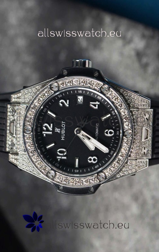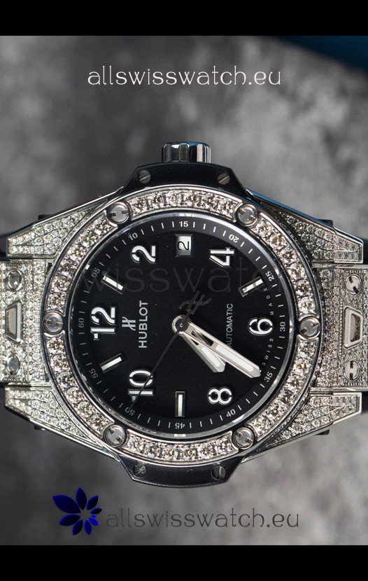 You're reviewing: Hublot Big Bang One Click Mossanites Paved Casing Swiss Replica Watch Black Dial