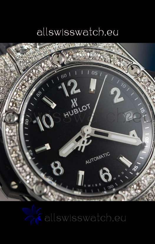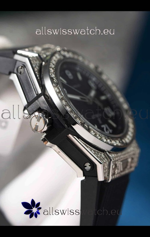 Hublot Big Bang One Click Mossanites Paved Casing Swiss Replica Watch Black Dial