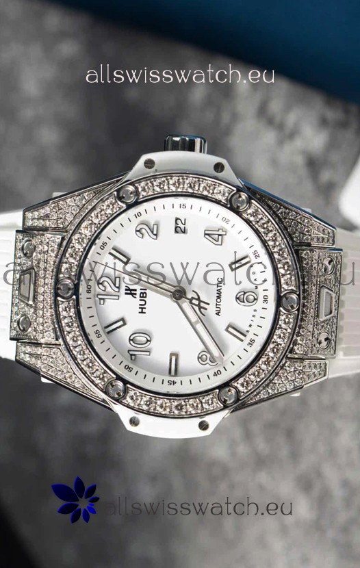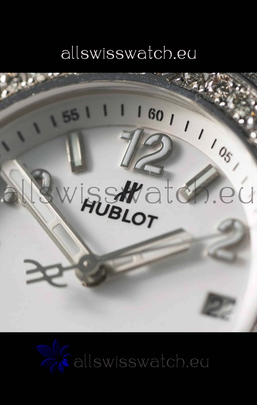 You're reviewing: Hublot Big Bang One Click Mossanites Paved Casing Swiss Replica Watch White Dial