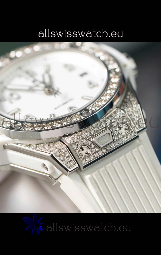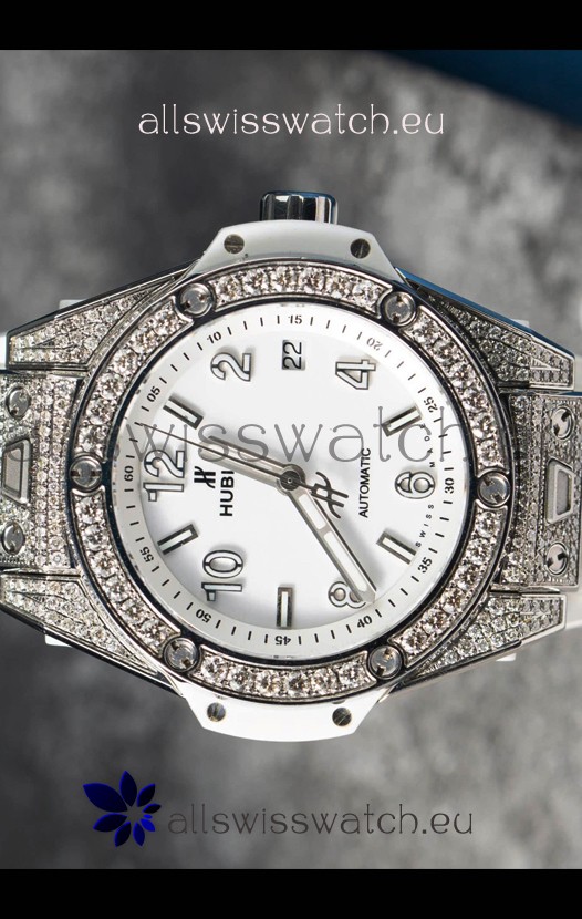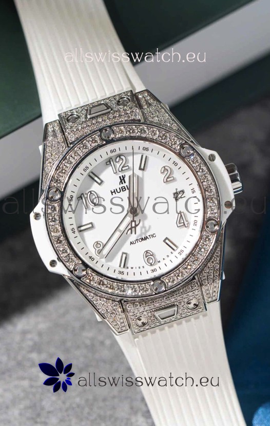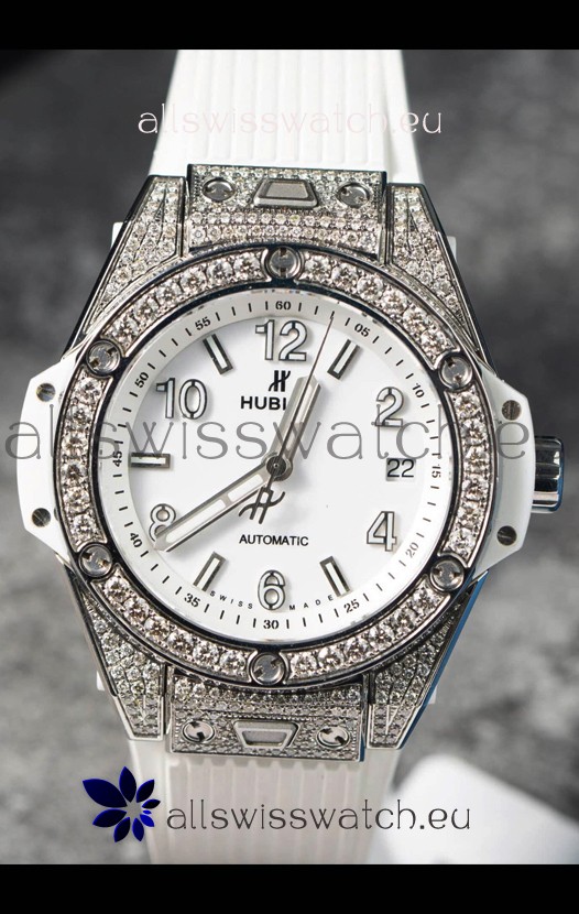 Hublot Big Bang One Click Mossanites Paved Casing Swiss Replica Watch White Dial