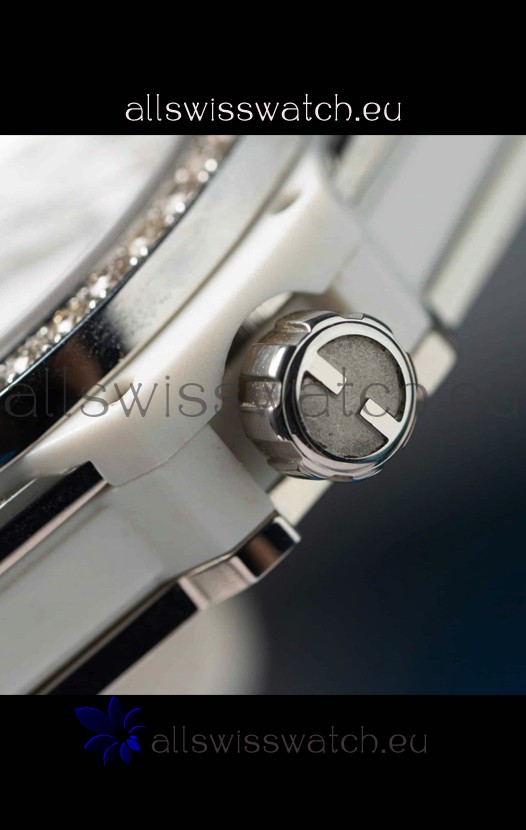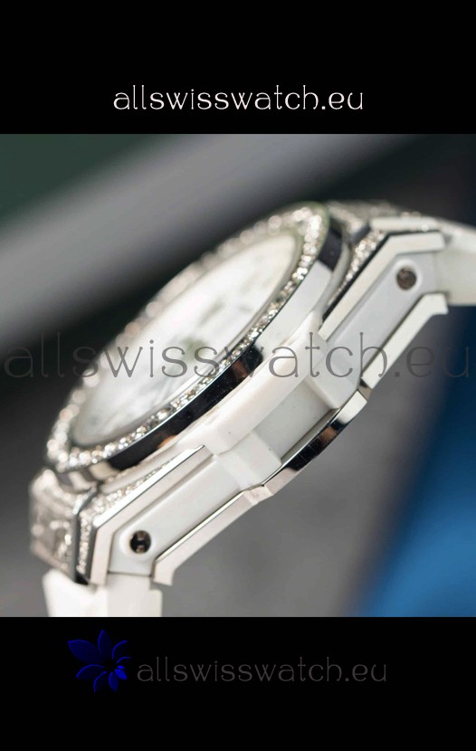 White Dial with Mossanites Paved Casing and Bezel