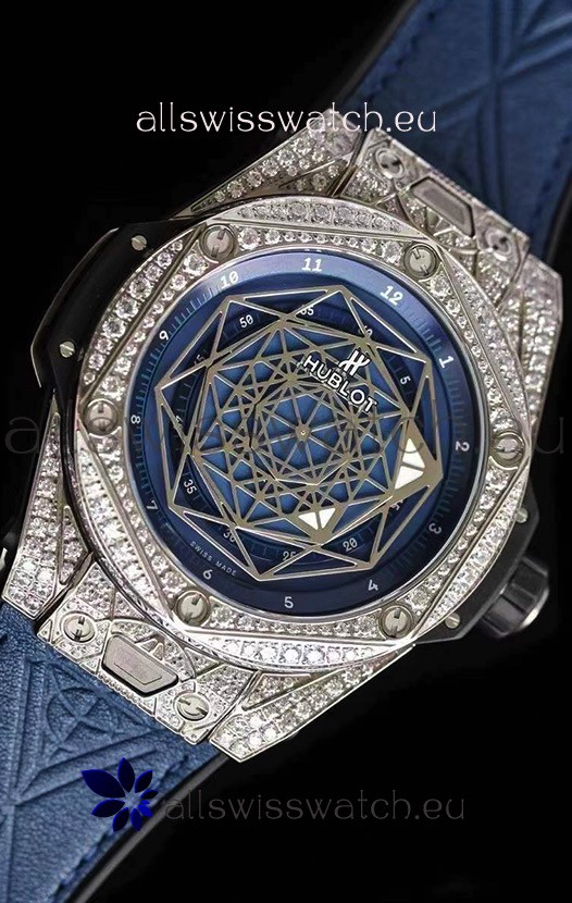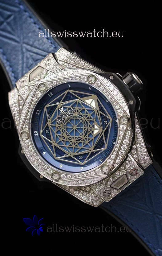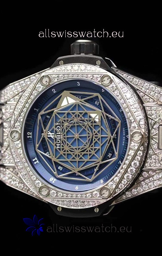 Hublot Big Bang Sang Bleu 45MM Stainless Steel Diamonds Edition Swiss Replica Watch