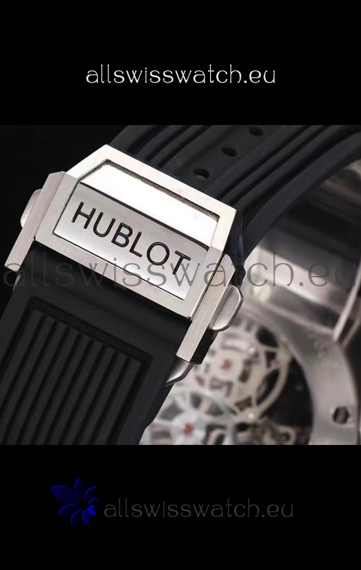 Rubber Strap with Steel Folding Clasp complete with Hublot Markings and Engravings.