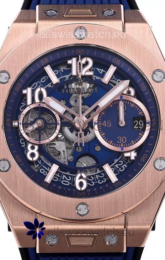 Hublot Big Bang Unico Blue Rose Gold Casing 1:1 Mirror Edition Swiss Replica Watch