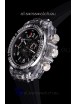Skeleton Dial with 2 Functional Sub Dials for Seconds Display and Chronometer sub dial working in conjunction to the Chronograph feature as per the originals. Functional Date Indicator