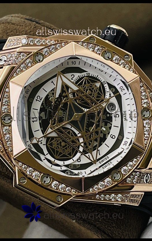 Hublot Big Bang UNICO Sang Bleu II Rose Gold Diamonds 1:1 Mirror Quality Swiss Replica Watch