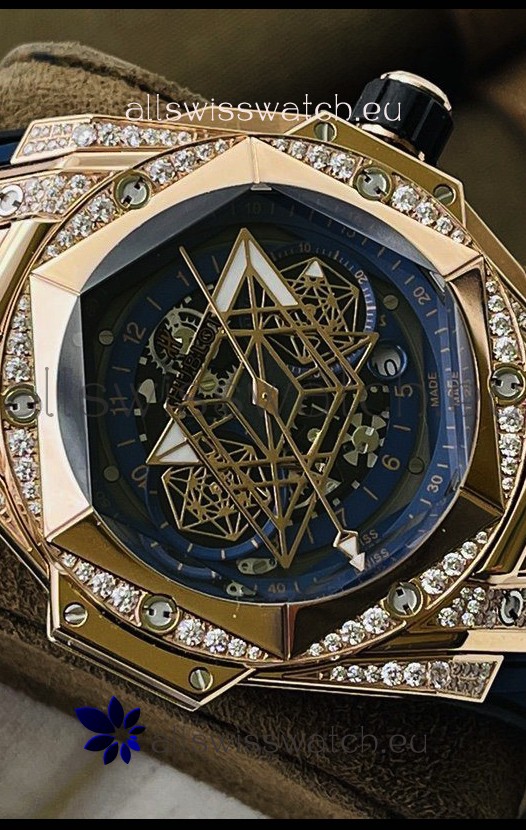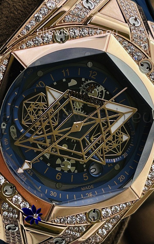 Hublot Big Bang UNICO Sang Bleu II Rose Gold Diamonds 1:1 Mirror Quality Swiss Replica Watch