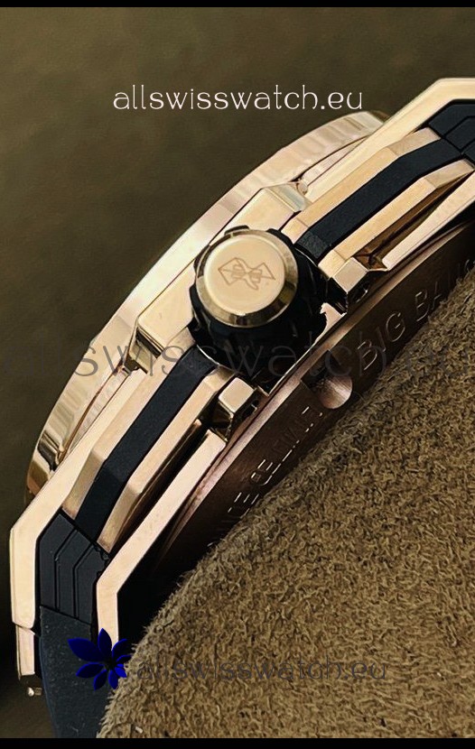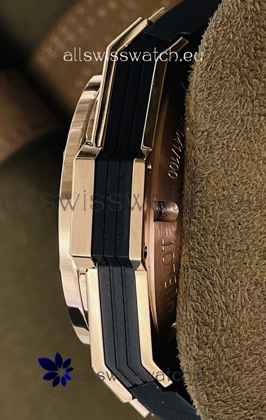 18K Rose Gold Plating with Diamonds Encrusted on 904L Stainless Steel Casing in Geometric Form, one of the the most advanced watch casing production technique on a Replica watch to give it a 1:1 mirror Look.