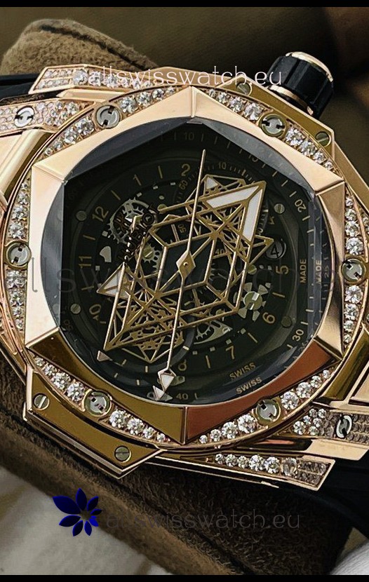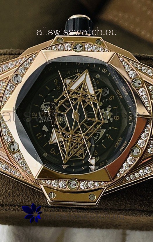 Hublot Big Bang UNICO Sang Bleu II Rose Gold Diamonds 1:1 Mirror Quality Swiss Replica Watch