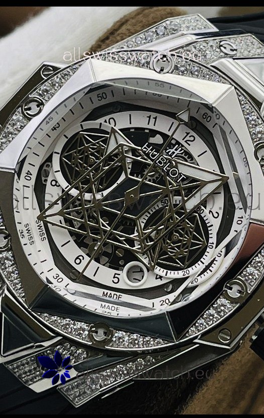Hublot Big Bang UNICO Sang Bleu II Stainless Steel Diamonds 1:1 Mirror Quality Swiss Replica Watch