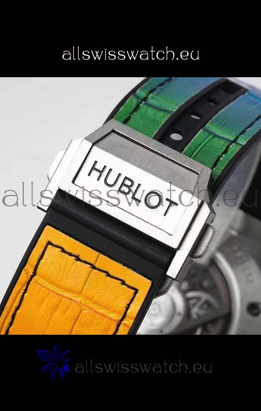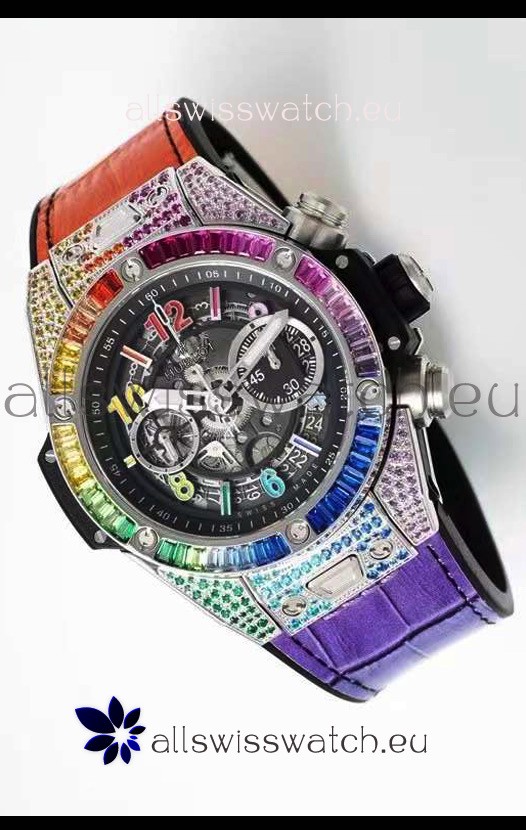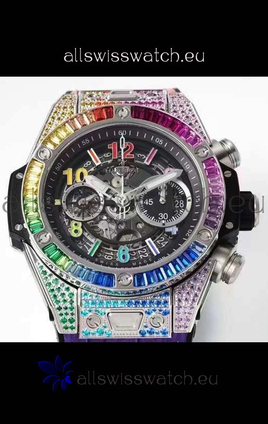 316L Stainless Steel Casing embedded with colorful Sapphires complete with Hublot Markings and Engravings