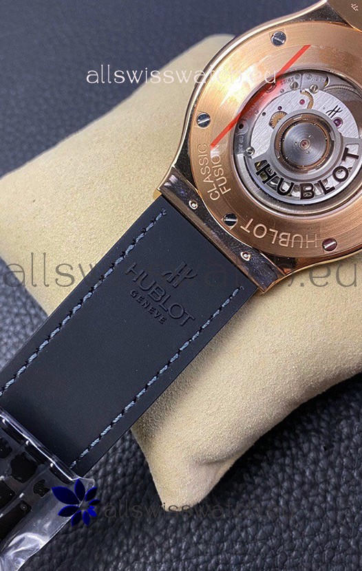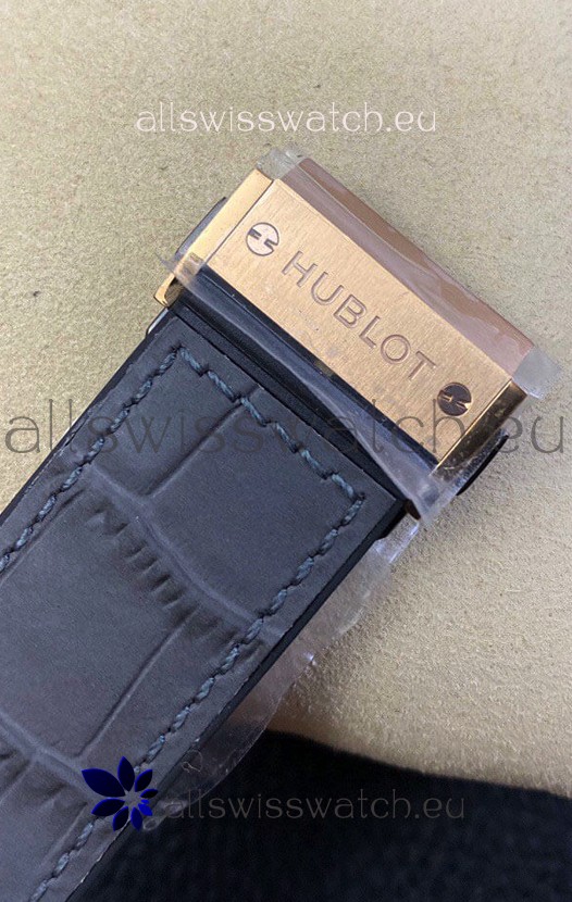 Rubber Clad Leather Strap with Steel Folding Clasp complete with Hublot Markings and Engravings.