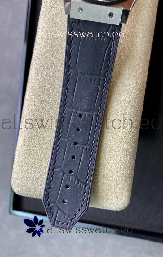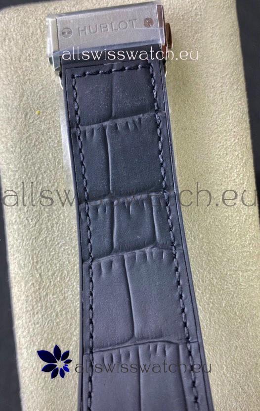 Rubber Clad Leather Strap with Steel Folding Clasp complete with Hublot Markings and Engravings.