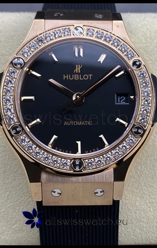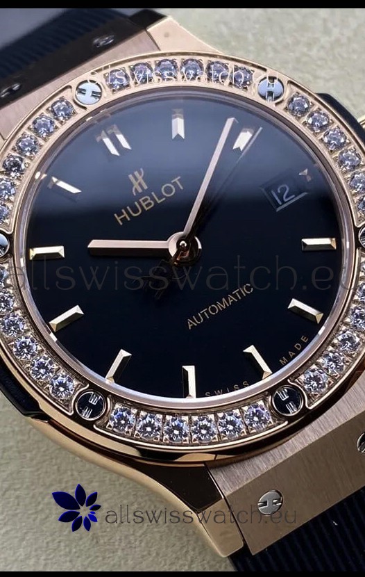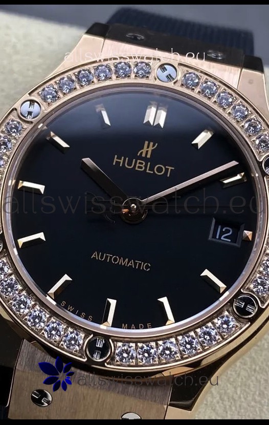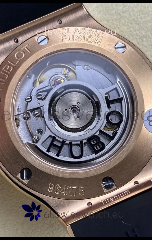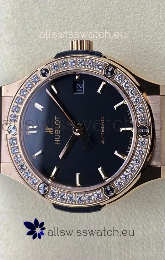 You're reviewing: Hublot Classic Fusion 1:1 Mirror Replica Swiss Watch in Rose Gold 904L Steel Casing Black Dial 38MM