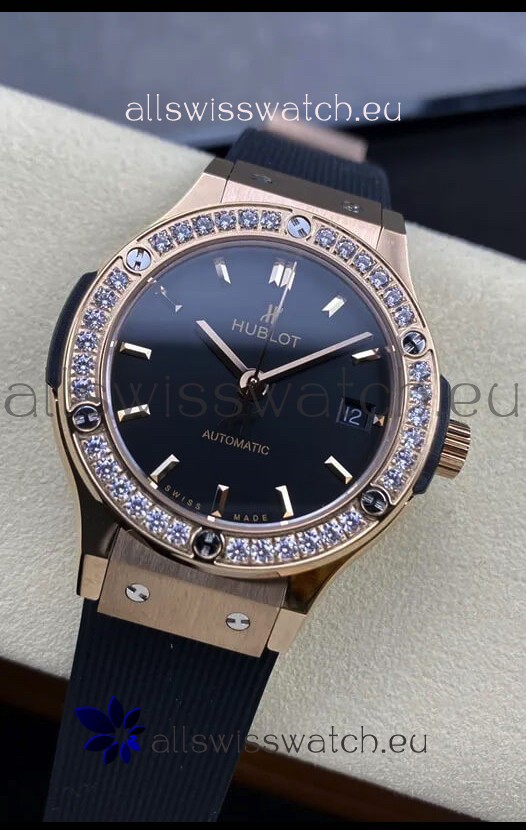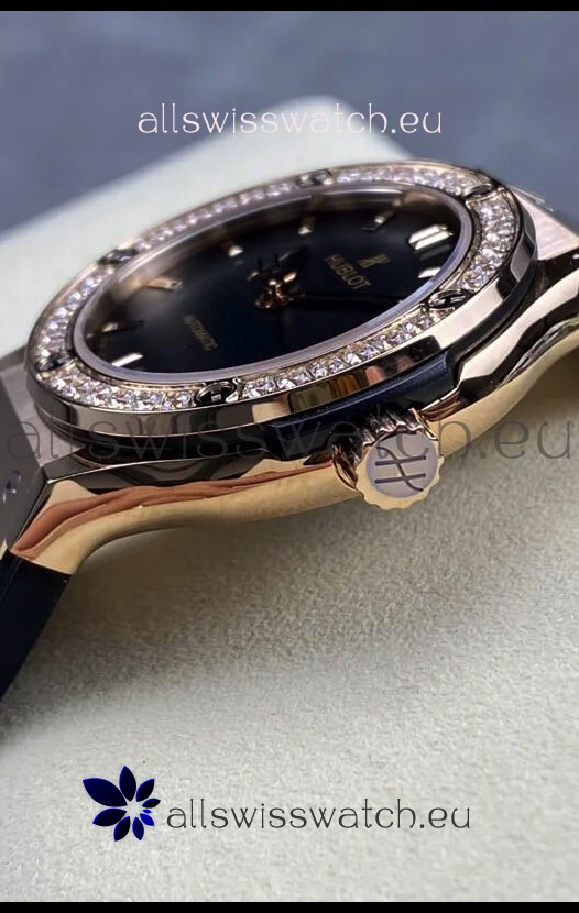 Hublot Classic Fusion 1:1 Mirror Replica Swiss Watch in Rose Gold 904L Steel Casing Black Dial 38MM