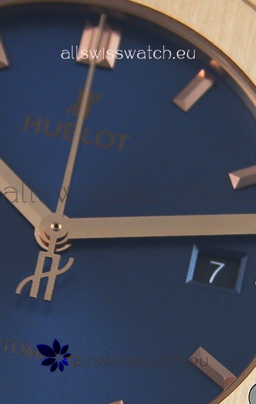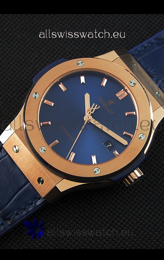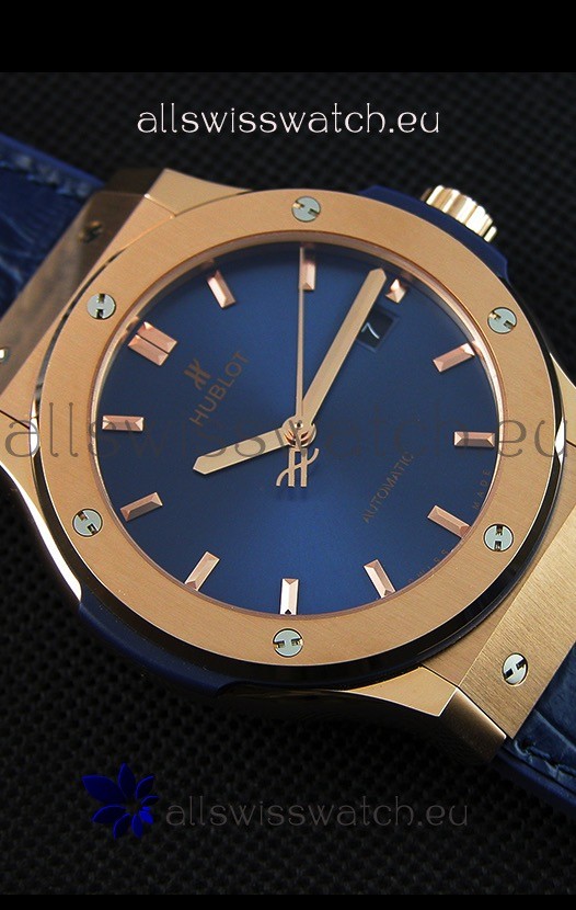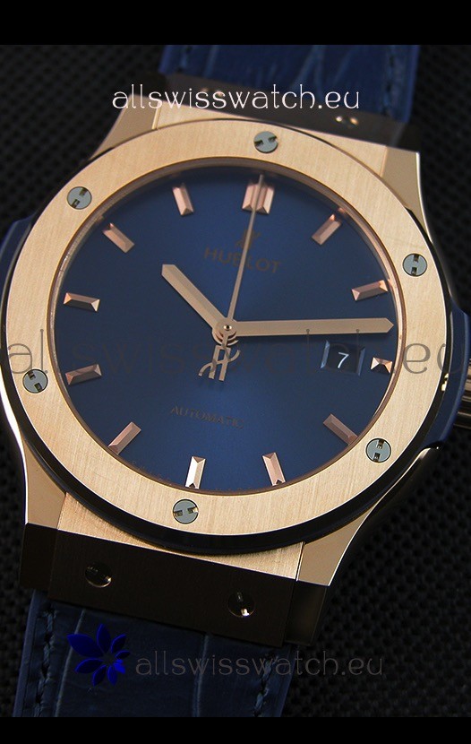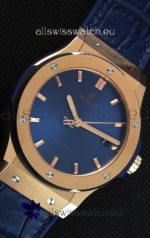 Top Grade Hublot Classic Fusion Blue King Gold Swiss Replica Watch - 1:1 Mirror Replicawith Free Shipping and 1 year warranty