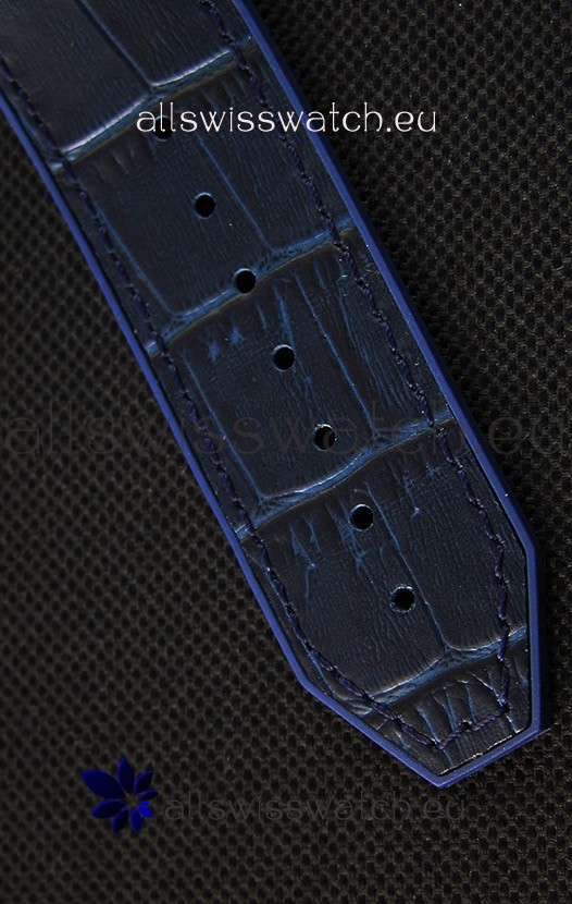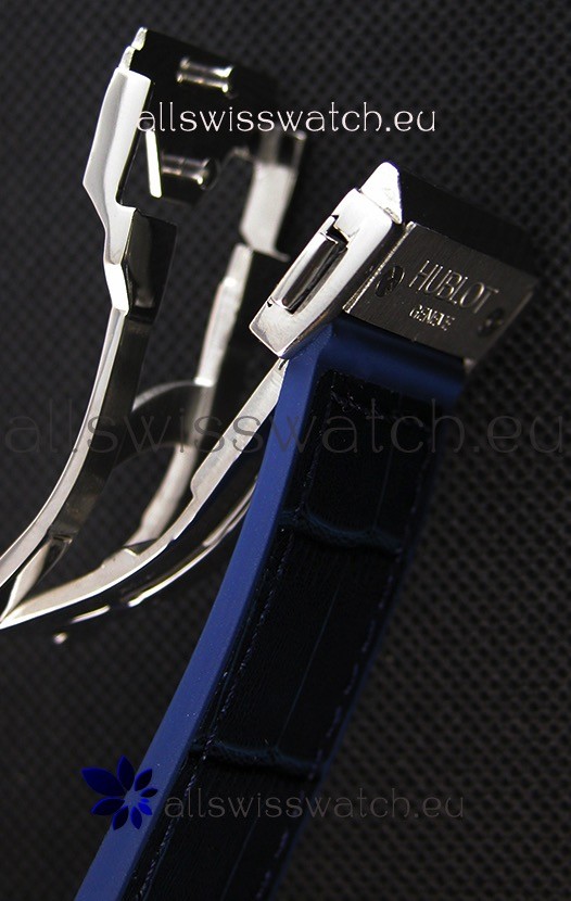 Rubber Clad Leather Strap with Steel Folding Clasp complete with Hublot Markings and Engravings.