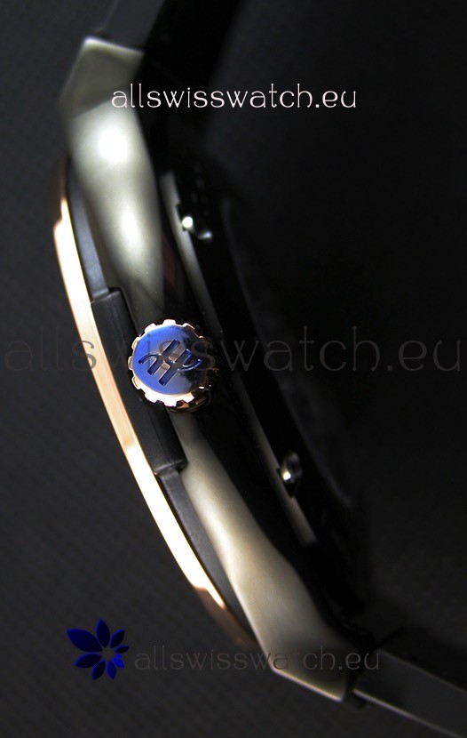Ceramic Case with Hublot Markings and Engraving. Pink Gold Plated Bezel
