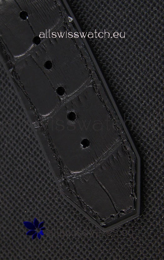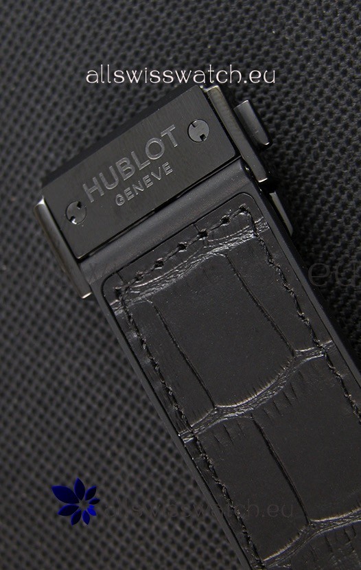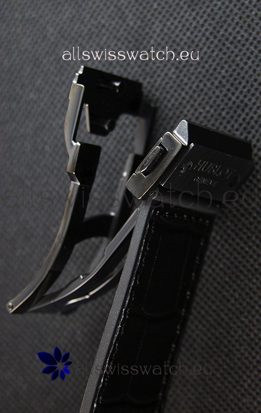 Rubber Clad Leather Strap with PVD Coated Clasp complete with Hublot Markings and Engravings.