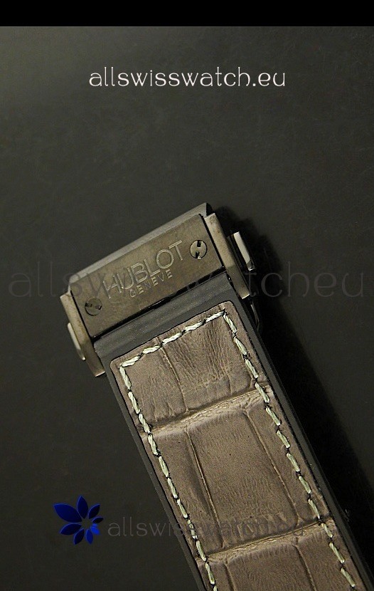 Hybrid Leather and Rubber Strap with Hublot Markings and Engravings