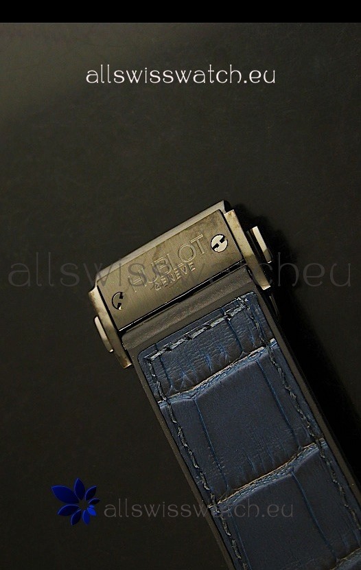 Hybrid Leather and Rubber Strap with Hublot Markings and Engravings