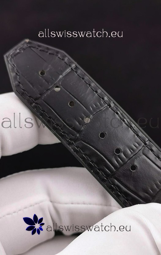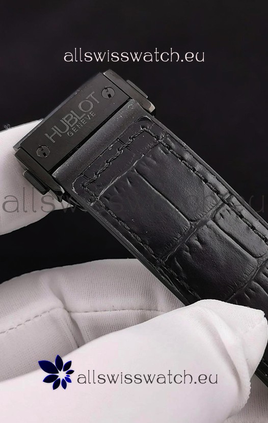 Rubber/Leather Clad Hybrid Strap with Steel Folding Clasp complete with Hublot Markings and Engravings.