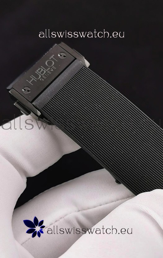 Rubber Strap with Steel Folding Clasp complete with Hublot Markings and Engravings.