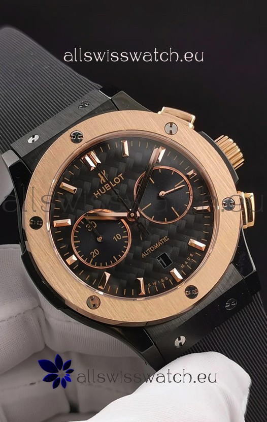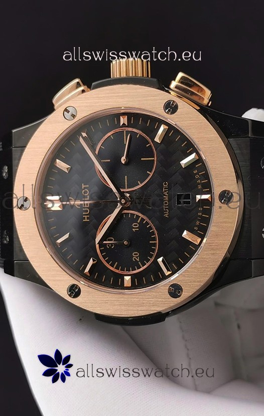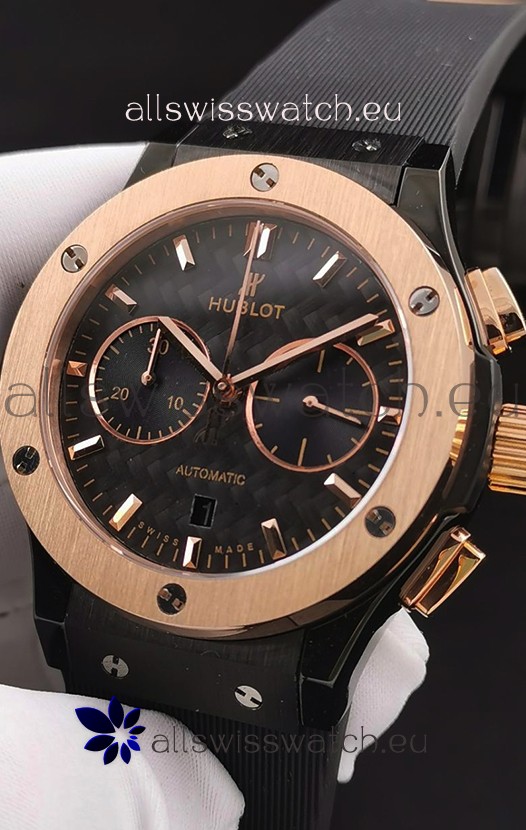 Hublot Classic Fusion Chronograph Ceramic Rose Gold Bezel Carbon Dial 1:1 Mirror Replica Watch