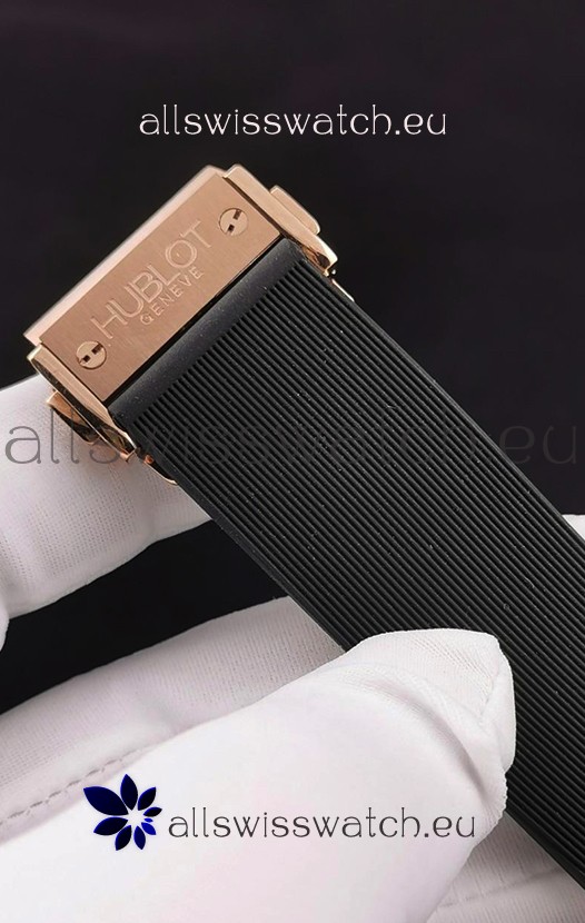 Rubber Strap with Steel Folding Clasp complete with Hublot Markings and Engravings.