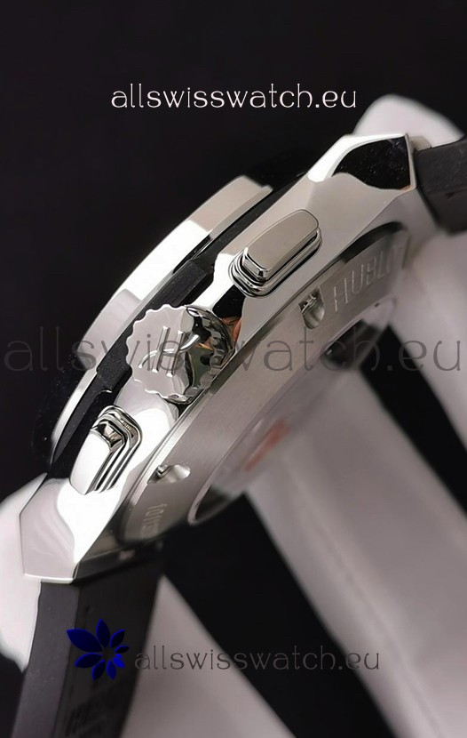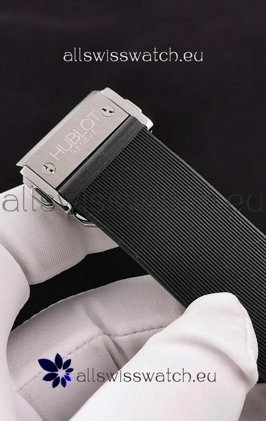 Rubber Strap with Steel Folding Clasp complete with Hublot Markings and Engravings.