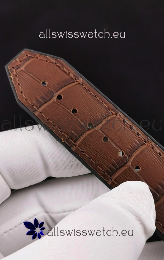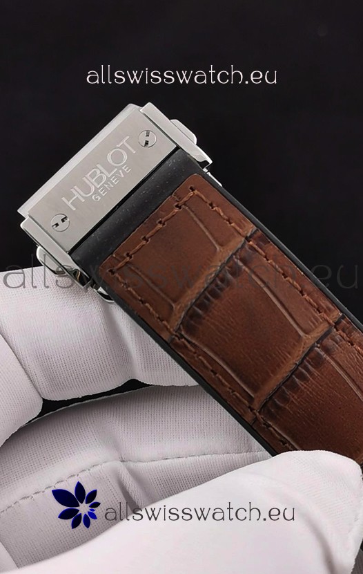 Rubber Clad Leather Strap with Steel Folding Clasp complete with Hublot Markings and Engravings.