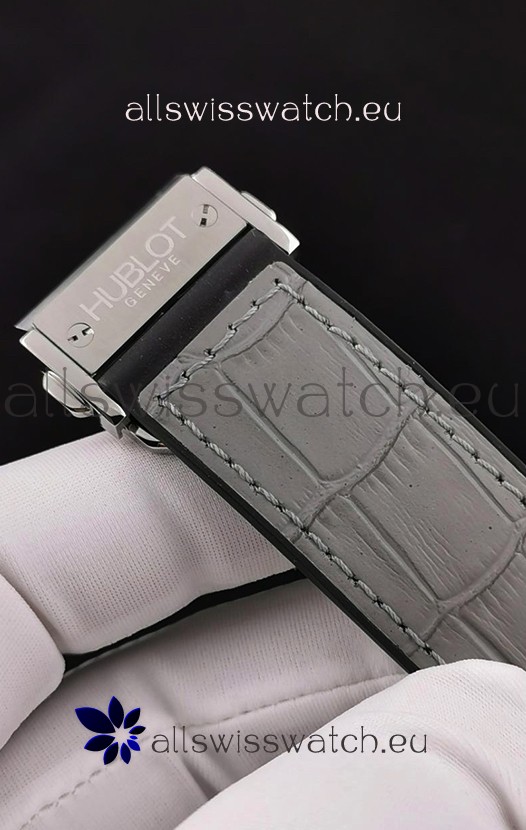 Rubber Clad Leather Strap with Steel Folding Clasp complete with Hublot Markings and Engravings.