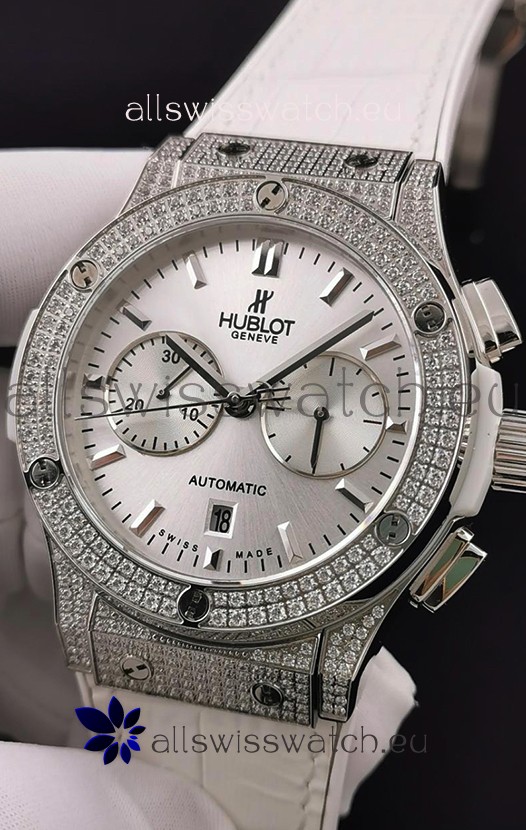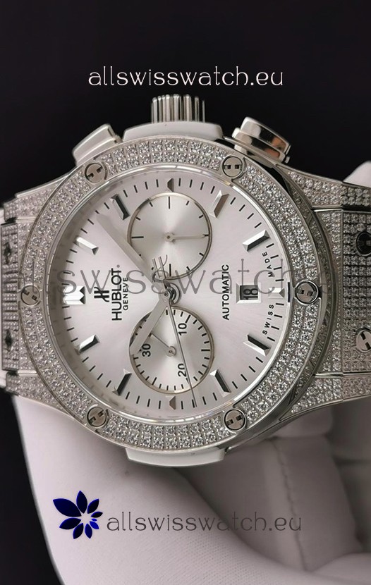 Hublot Classic Fusion Chronograph Steel Diamonds Casing Steel Dial 1:1 Mirror Replica Watch