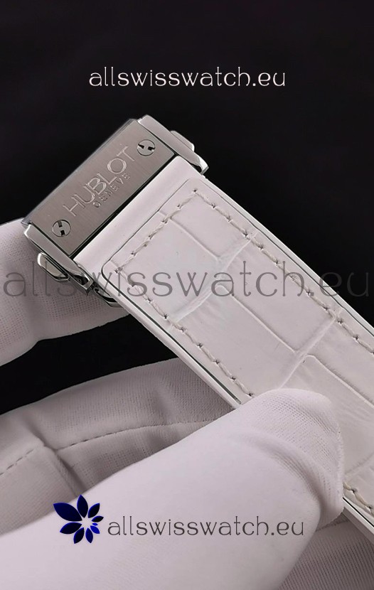 Rubber Clad Leather Strap with Steel Folding Clasp complete with Hublot Markings and Engravings.