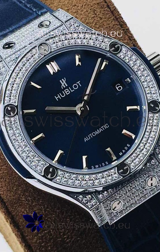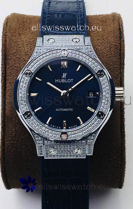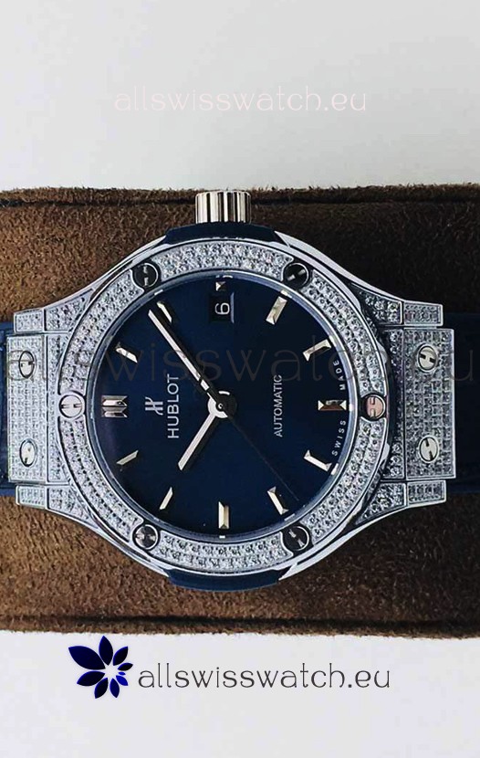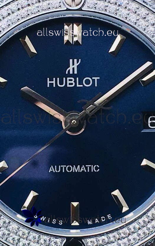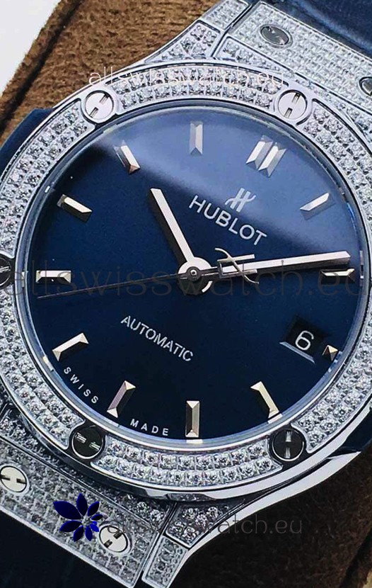Hublot Classic Fusion Diamonds Steel Blue Dial 38MM Swiss Replica Watch 1:1 Mirror Quality
