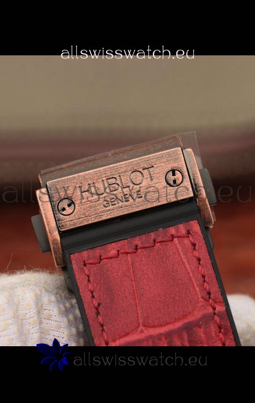 Genuine Rubber Strap and Bronze Coated Folding clasp with Hublot Markings and Engravings