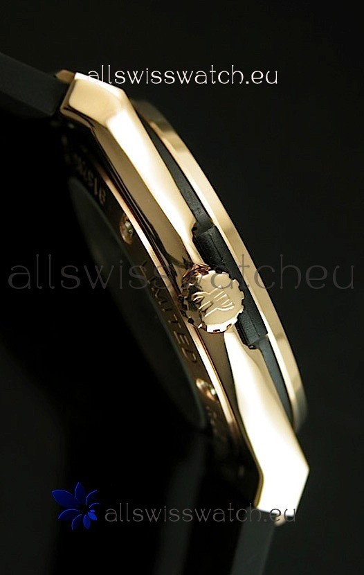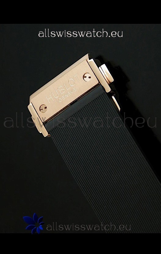 Genuine Black Rubber Strap with 18K Pink Gold Plated Deployant Buckle