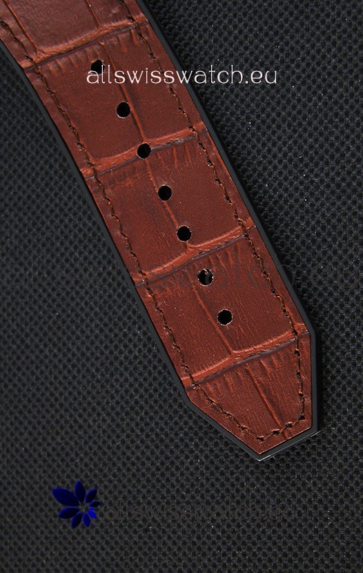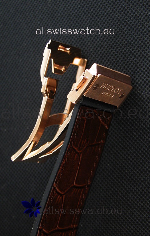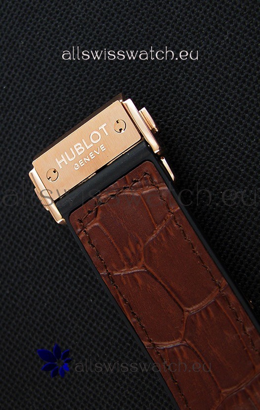 Rubber Clad Leather Strap with PVD Coated Clasp complete with Hublot Markings and Engravings.