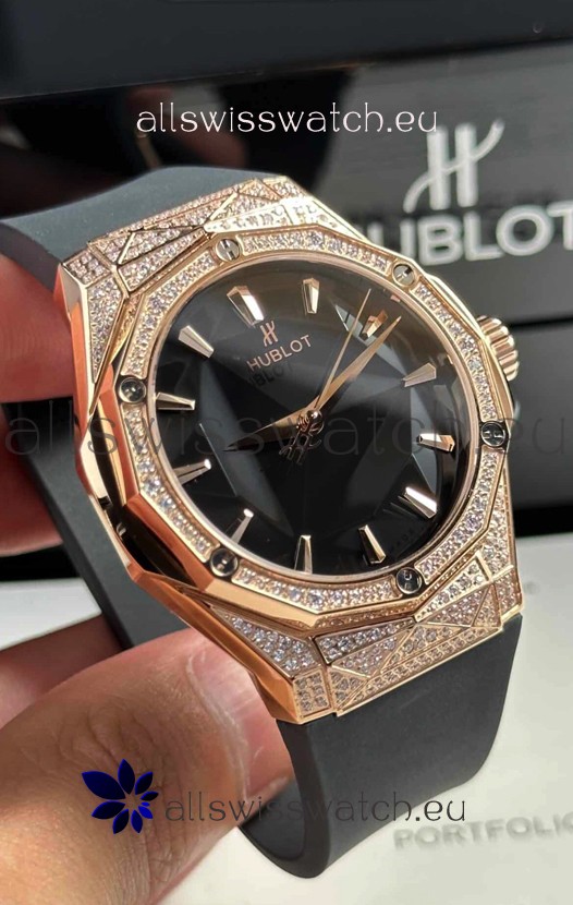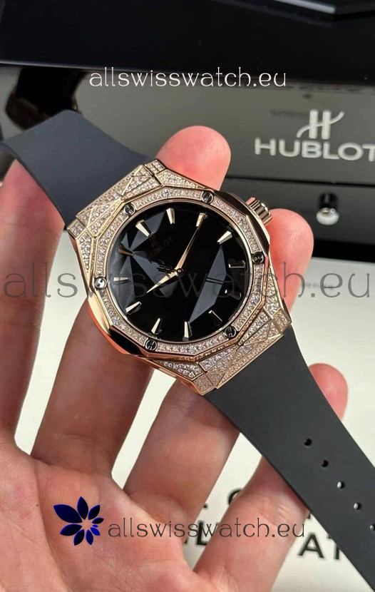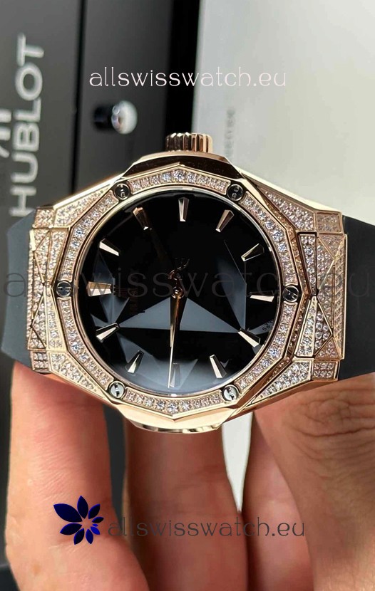 Hublot Classic Fusion Orlinski Diamonds Paved Rose Gold Edition Black Dial Swiss Replica Watch 40MM