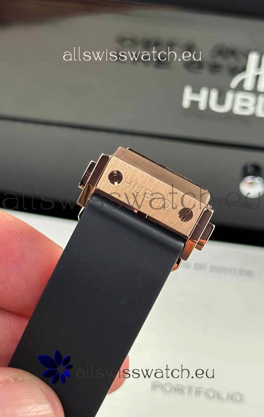 Genuine Rubber Strap with Steel Folding Clasp complete with Hublot Markings and Engravings.
