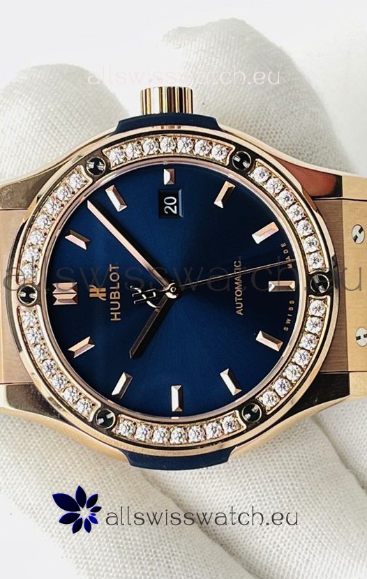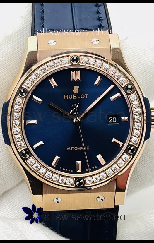 Hublot Classic Fusion Rose Gold Steel Blue Dial Swiss Replica Watch 1:1 Mirror Quality