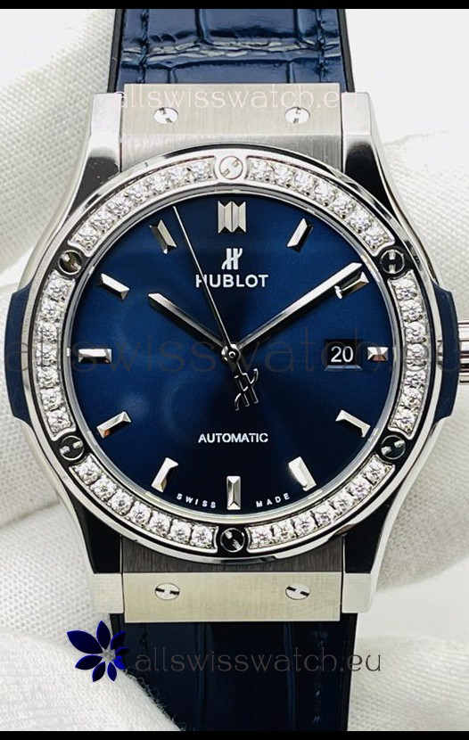 Hublot Classic Fusion Stainless Steel Blue Dial Swiss Replica Watch 1:1 Mirror Quality