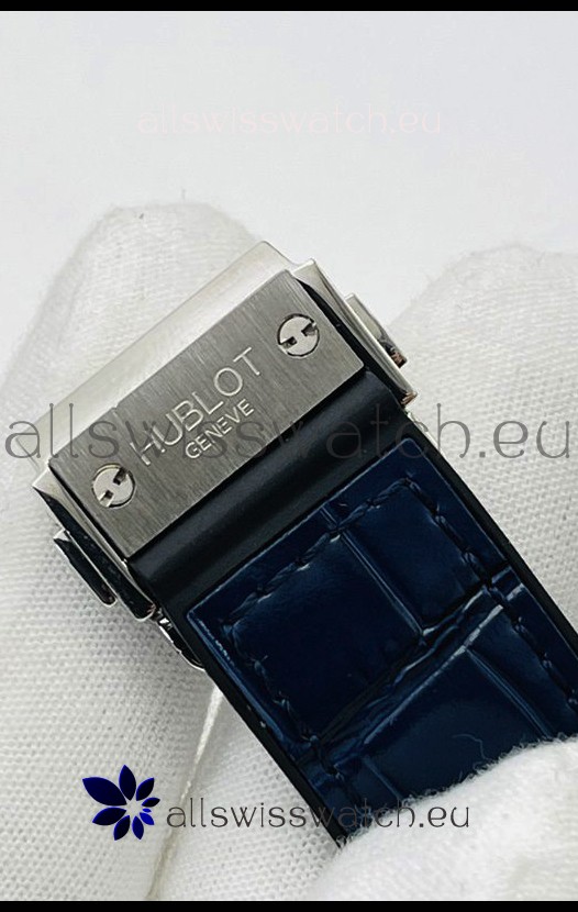 Rubber Clad Leather Strap with Steel Folding Clasp complete with Hublot Markings and Engravings.